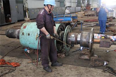 重點工程之一: 耙管滑塊拆送車間堆焊鏜孔修理;